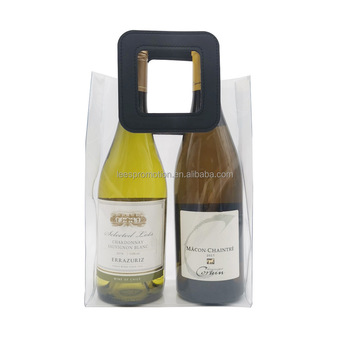 Enfriador transparente Bolsa de vino Bolsa con asa con cordón Portador de botellas de plástico Bolsa de hielo de PVC transparente