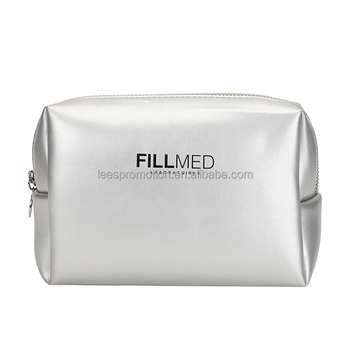 Bolsa de cosméticos grande de PU Vintage plateada, bolsa de maquillaje suave para uso diario o al aire libre con patrón de letras