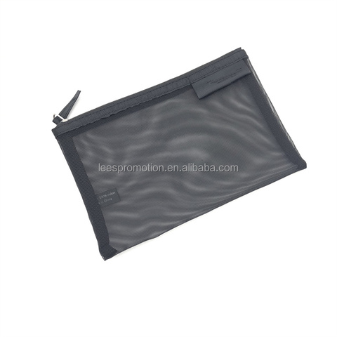 Sac cosmétique en maille noire personnalisée légère pour voyage pochette cosmétique à fermeture éclair sac de beauté pour maquillage de femme
