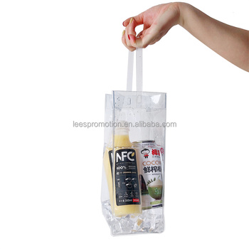 Saco de vinho transparente para refrigerador, saco com alça e cordão, saco plástico transparente para garrafas, saco de gelo em PVC